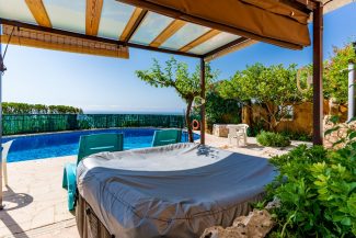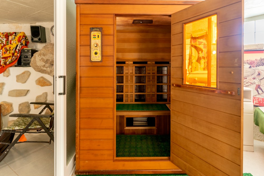 Damit Sie die Sonne am Pool und in Ihrem Garten mit mehreren Terrassen und Rasenflächen genießen können, verfügt es über Terrassenmöbel und Sonnenliegen. Wenn Sie in den Schatten gehen möchten, verfügt es über Bäume, die Ihnen wunderbare Momente der Entspannung ermöglichen oder genießen. Es verfügt über ein Wohnzimmer mit Bad, Duschen, Küche und Kühlschrank.