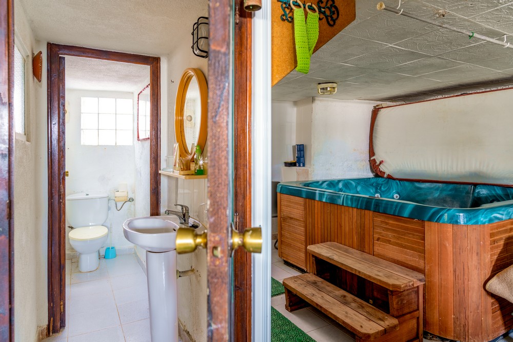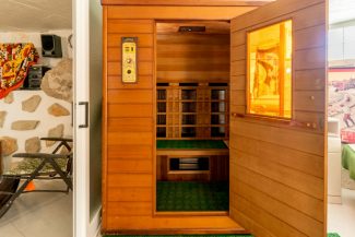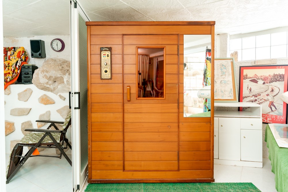 – 1. Haus im ersten Stock: mit 3 Schlafzimmern, Wohnzimmer, Büro, Waschküche, 3 Bädern, Terrassen, Veranda, Grill, Sat-TV, Fitnessraum mit Whirlpool, Sauna, Sonnenstrahlen mit Duschen, Bad, Spielzimmer und Bar mit Bad .